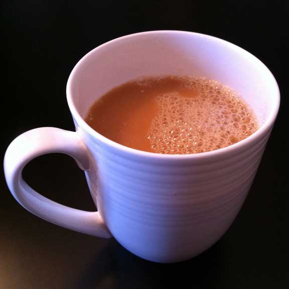 Starbuck’s Chai tea with soy yumm… but at $5 a cup it was getting really expensive. So I switched to buying the Tazo Chai Tea concentrate. However, after visiting a friend’s house for lunch I discovered how easy it was to make the concentrate myself! Since then I have been making my chai syrup at a fraction of the cost.