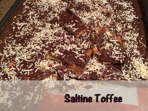 Line the cookie sheet with tin foil. Make sure the foil overlaps the edges to make it easier to get the toffee out. On top of the tin foil place a silpat baking sheet.