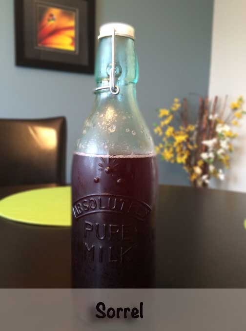 3 cups dried sorrel or red hibiscus flowers, or 5 Red Zinger tea bags