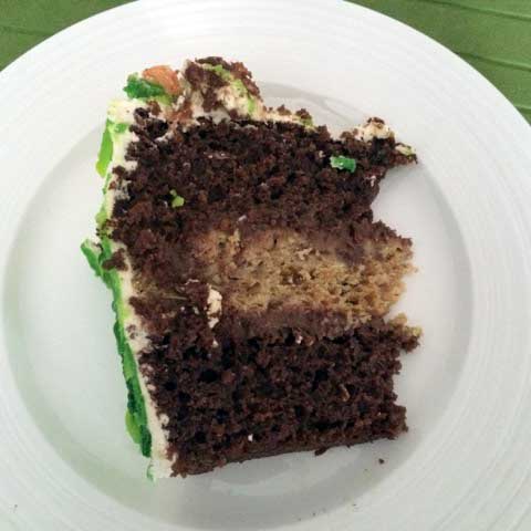 Oh well, I think it still turned out okay in the end, and it tasted great. Enough about the icing…. lets get to the cake. I started out making my basic box cake with chocolate and banana cream pudding. But decided it need another layer other wise the decorations I planned on the top would look to heavy. So I also made a banana cake for the middle layer. In between I made a strawberry and rhubarb compote with chocolate. Now lets get to making the cake.