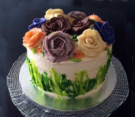 I tried chocolate modeling to make white and milk chocolate roses, and vanilla bean swiss meringue buttercream, and white chocolate buttercream. The white chocolate buttercream, while it sounds and tastes good, I definitely do not recommend using it to make roses. The roses were very, very delicate the next day and easily broke. Also, do not put it in the fridge to use the next day. The white chocolate solidified the icing into a hard lump. When I left it out of the fridge for a couple of hours, no softening happened. I had to put it in the microwave for a few seconds, and instead of a nice pipe-able consistency it was smooth like melted chocolate. However, on this post I will concentrate on the actual cake rather than the decorating.