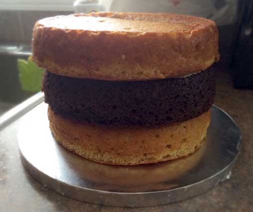 - Trim the cakes so that the sides are flat and the tops are level.